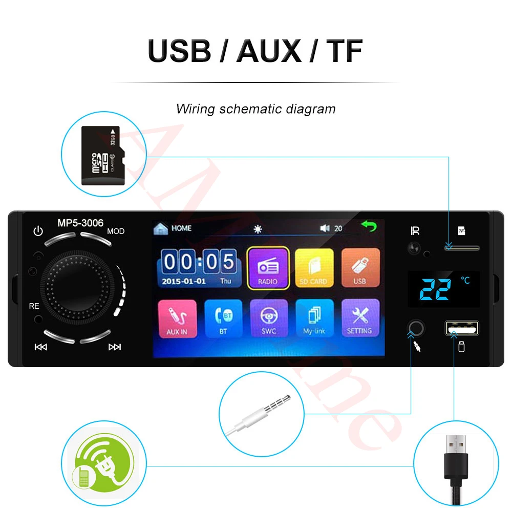 AMPrime Autoradio car radio 1 din 4.1" Touch Acreen Auto Audio Mirror link Car Stereo Bluetooth Rea